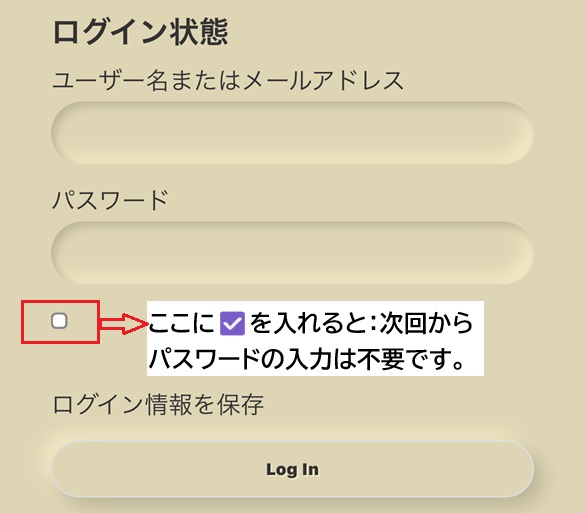 ログイン時に☑ボックスにチェックを
